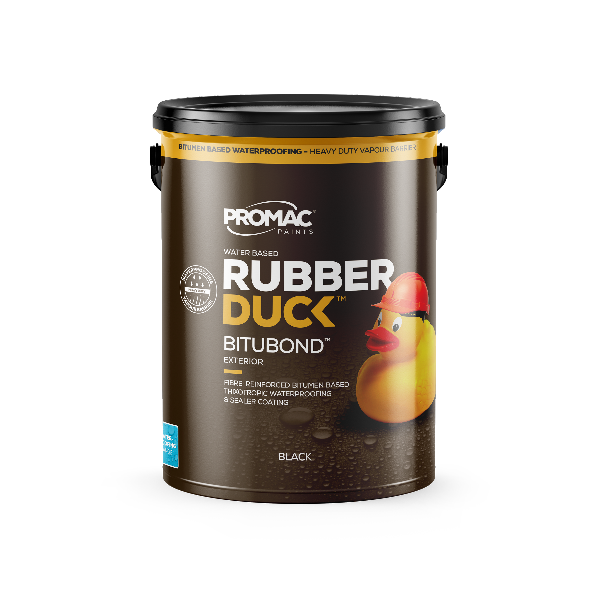 Rubber Duck Bitubond is a single component fibre reinforced bitumen-based, thixotropic heavy duty product for use on horizontal and vertical surfaces as a waterproofing and vapour barrier. Used in conjunction with a membrane to enhance the waterproofing system.